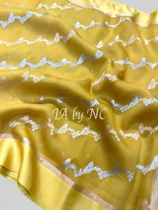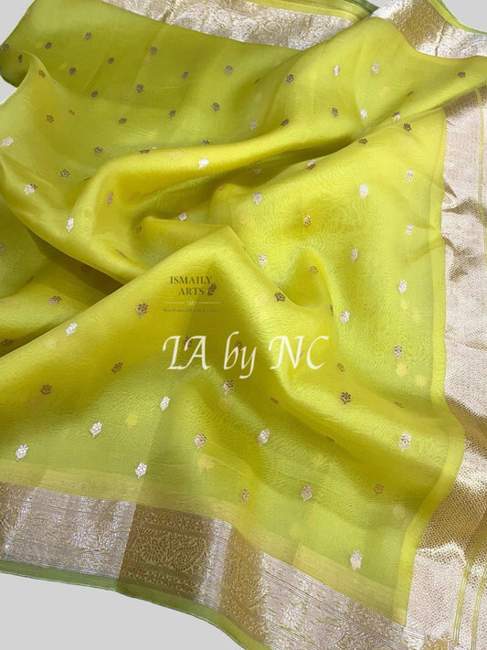 Lemon Banarasi Pure Kora Organza Kadwa Saree