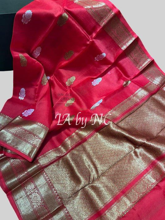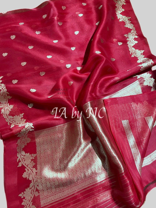 Chilli Banarasi Pure Kora Organza Kadwa Saree