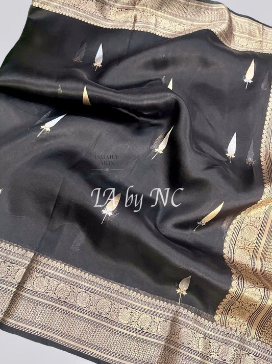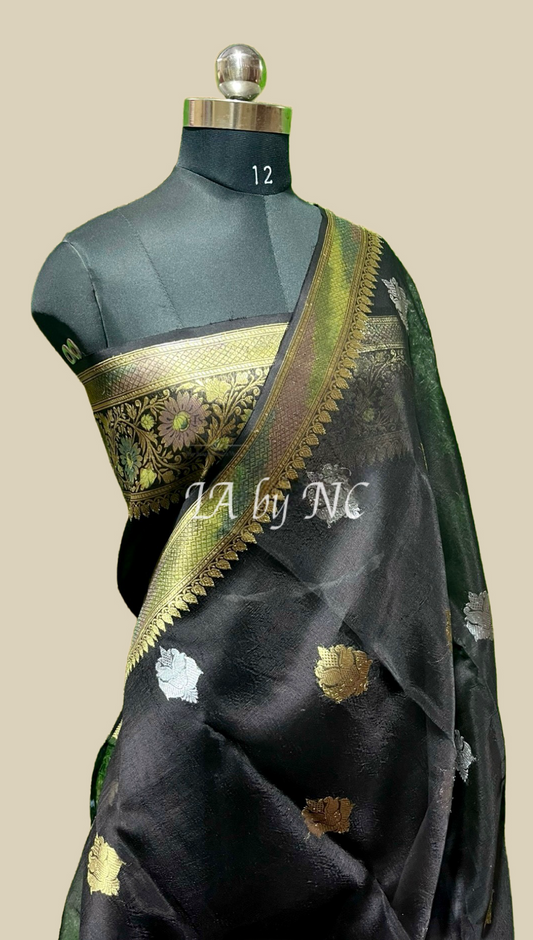Black Banarasi Pure Kora Organza Kadwa Saree
