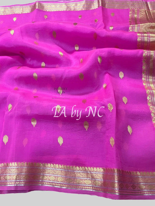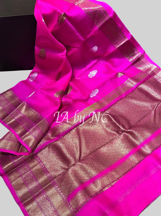 Fuschia Banarasi Pure Kora Organza Kadwa Saree