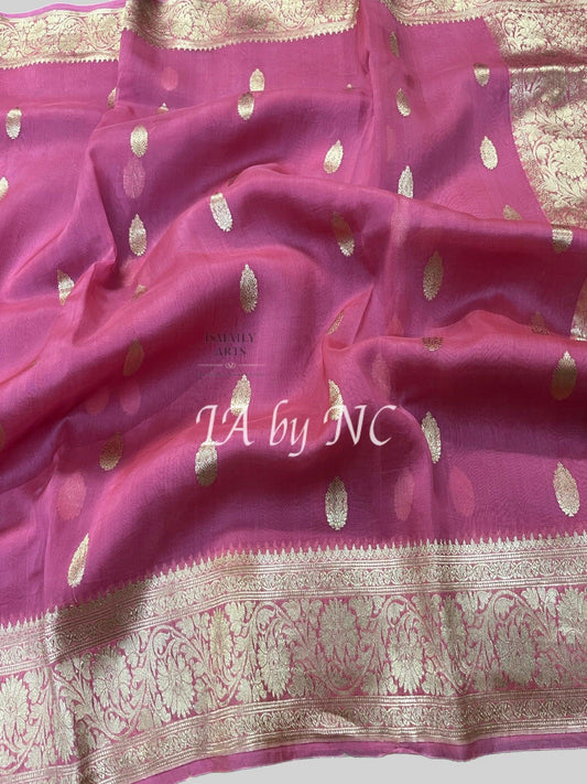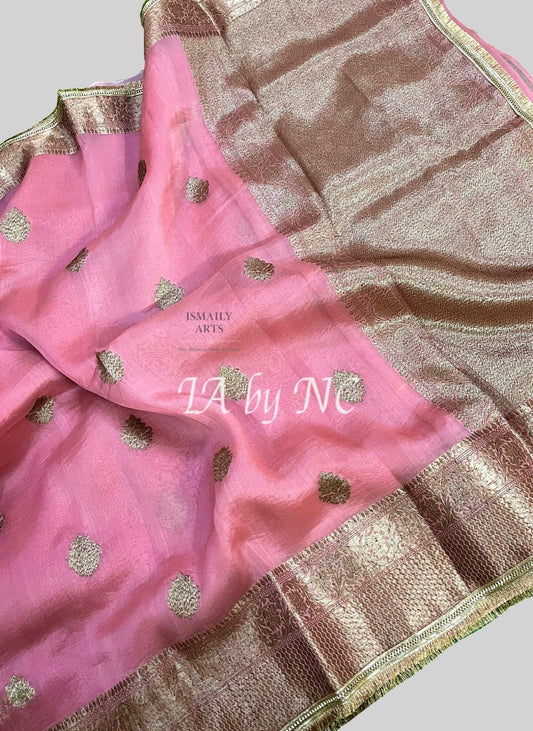Baby Banarasi Pure Kora Organza Kadwa Saree