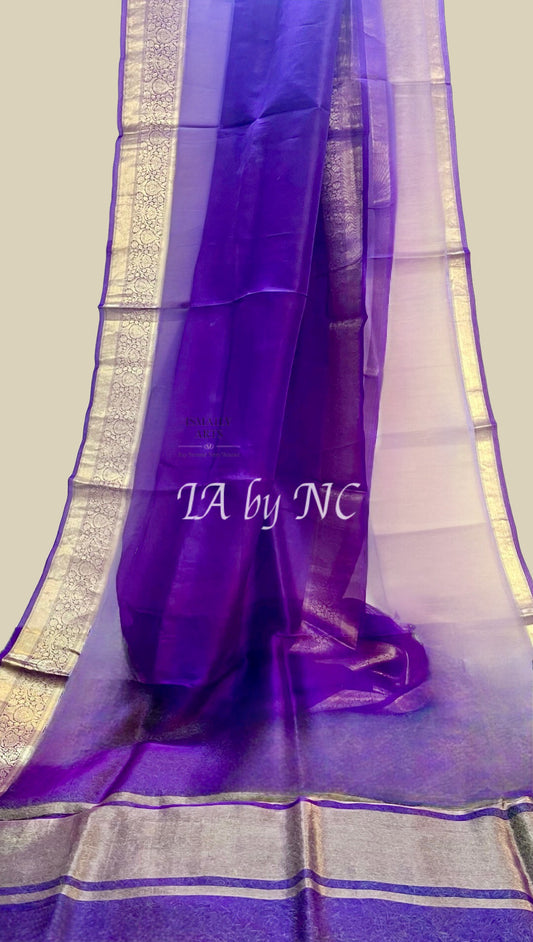 Grape Banarasi Pure Kora Organza Kadwa Saree