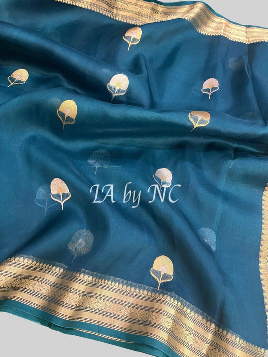 Abalone Banarasi Pure Kora Organza Kadwa Saree