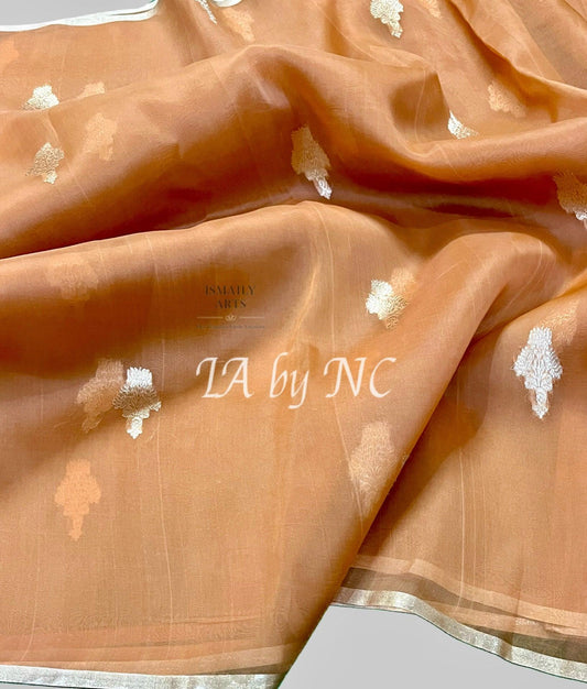 Tea Banarasi Pure Kora Organza Saree