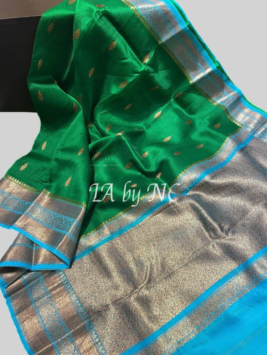 Turquoise Banarasi Pure Katan Silk Raw Mango Saree