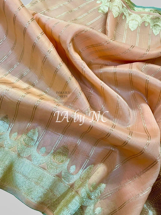 Peach Banarasi Pure Kora Organza Kadwa Saree