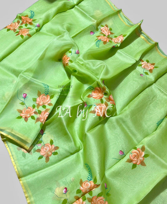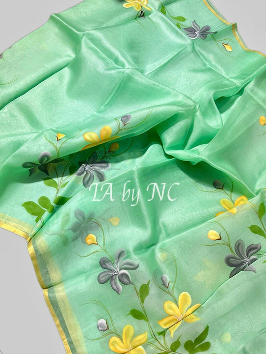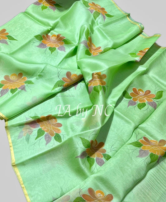 Mint Banarasi Pure Kora Organza Saree