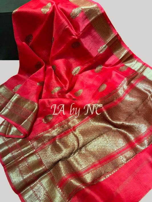 Chilli Banarasi Pure Kora Organza Kadwa Saree