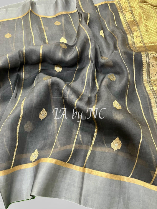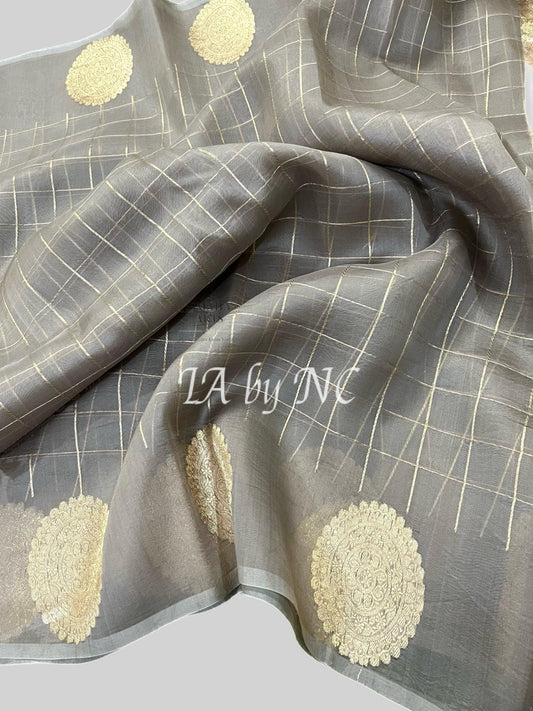 Mink Grey Banarasi Pure Kora Organza Saree