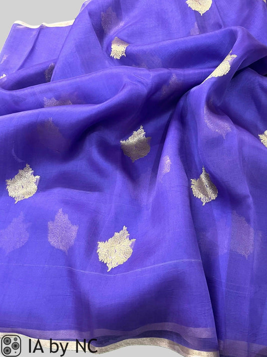 Indigo Banarasi Pure Kora Organza Kadwa Saree