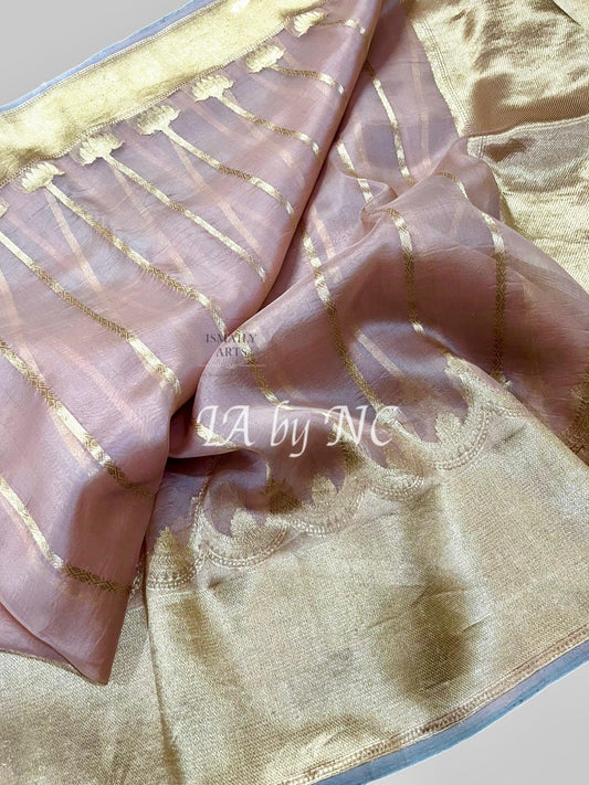 Baby Pink Banarasi Pure Kora Organza Saree