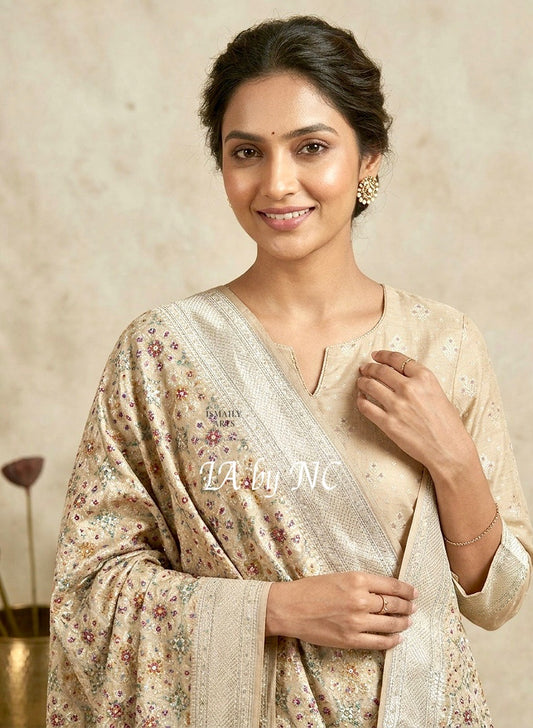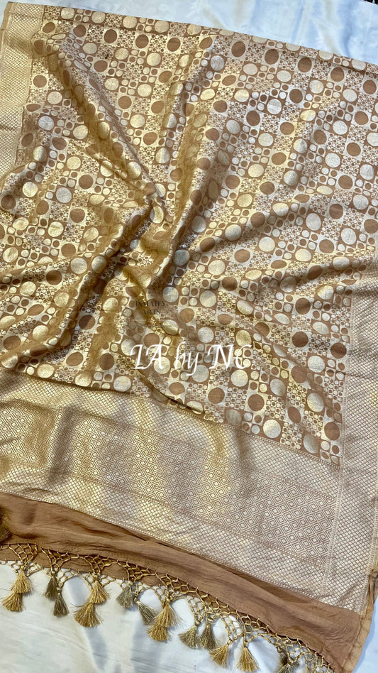 Beige Banarasi Pure Munga Silk Dupatta