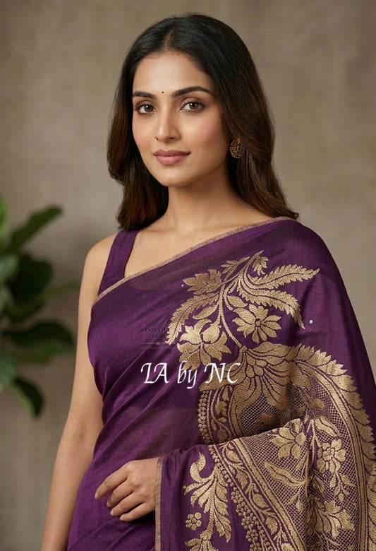Grape Banarasi Pure Munga Silk Saree