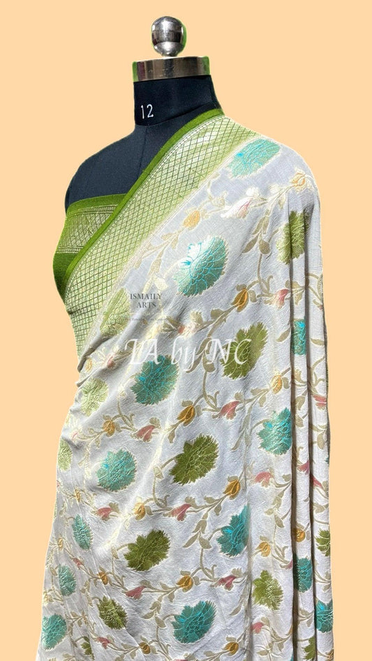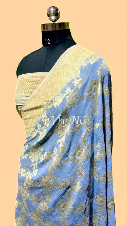 Sold outSteel Banarasi Pure Munga Silk Saree