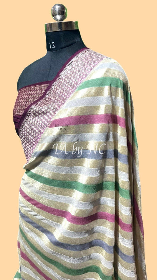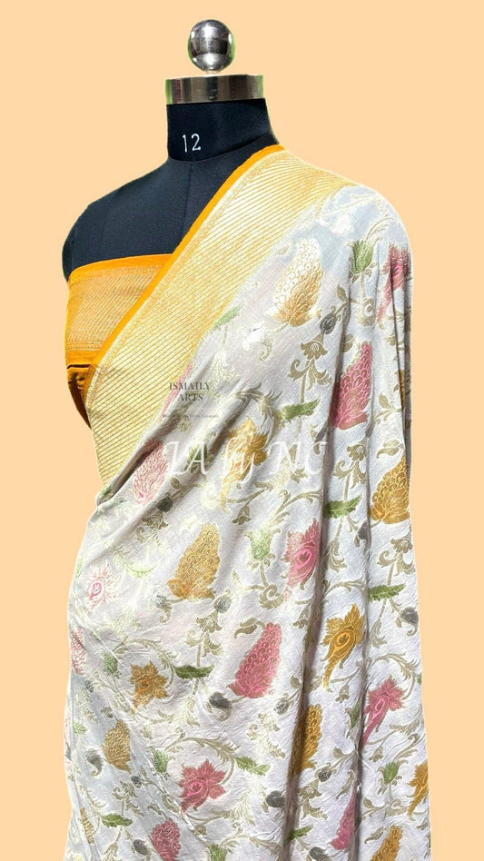 French Banarasi Pure Katan Silk Raw Mango Saree