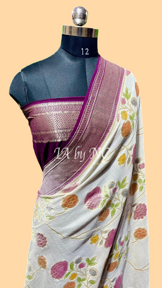 Sold outGrape Banarasi Pure Munga Silk Saree