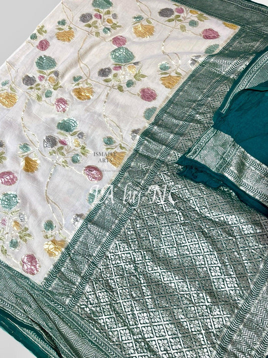 Turquoise Banarasi Pure Katan Silk Raw Mango Saree
