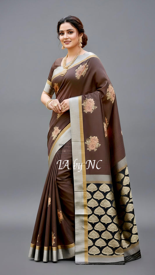 Walnut Banarasi Pure Munga Silk Saree