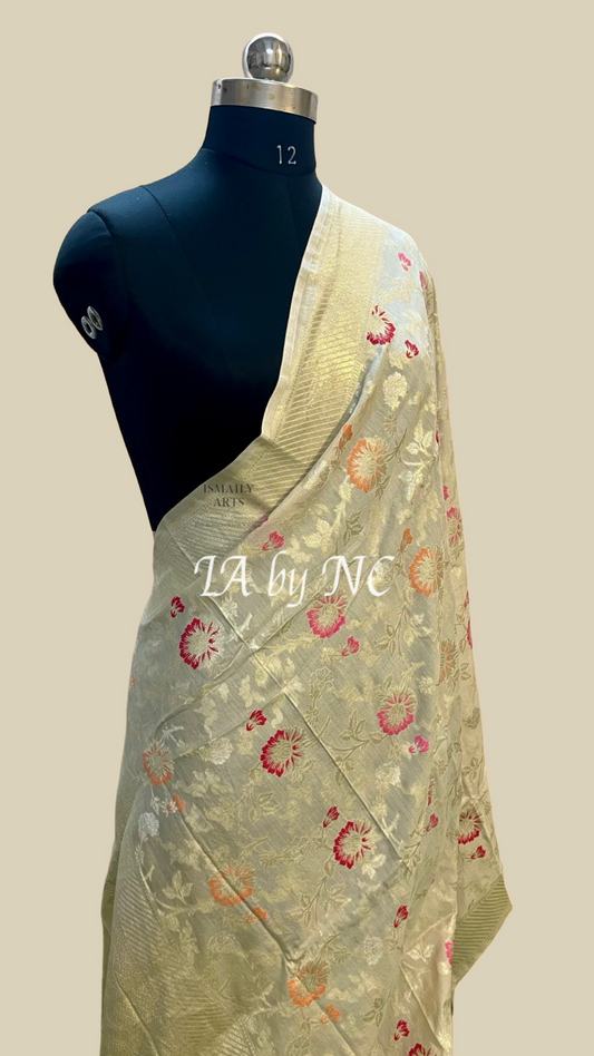 Beige Banarasi Pure Munga Silk Dupatta