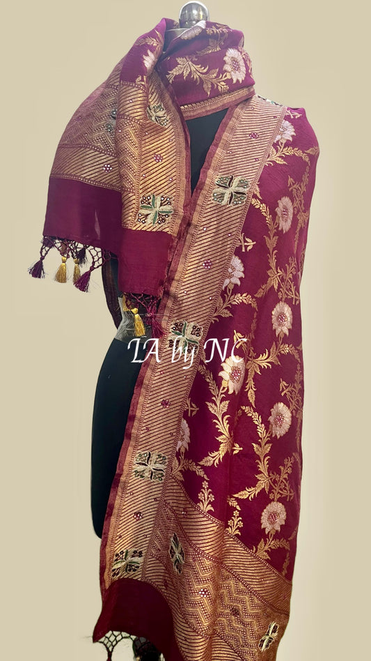 Sangria Banarasi Pure Munga Silk Sona Rupa Handwork Dupatta