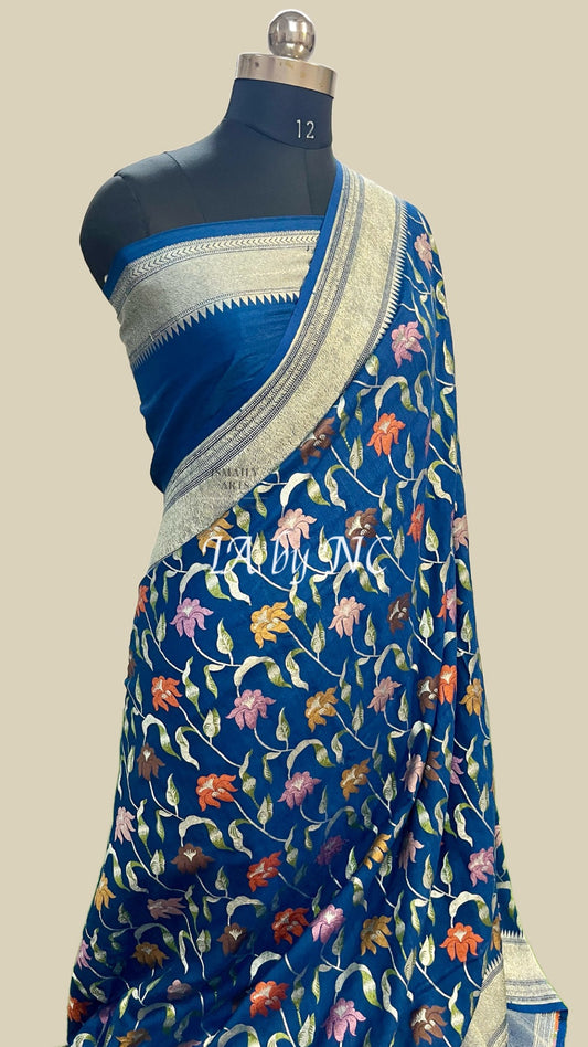 Navy Banarasi Pure Munga Silk Saree