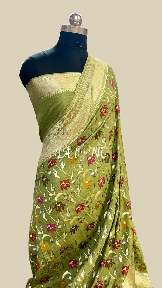Olive Banarasi Pure Munga Silk Saree