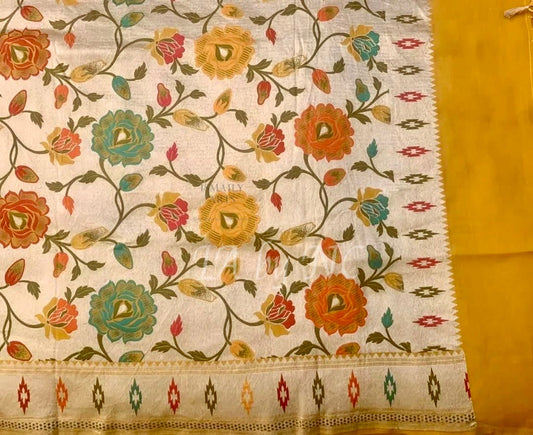 Beige Banarasi Pure Khaddi Tussar Georgette Paithani Saree