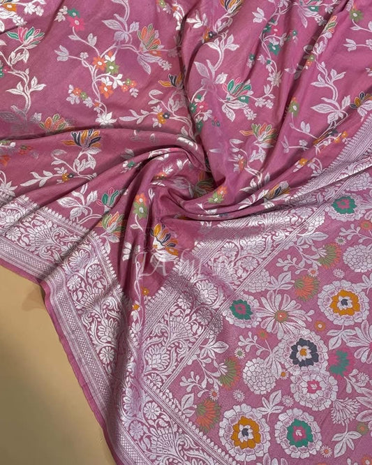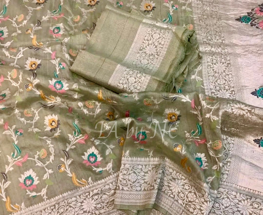 Moss Banarasi Pure Khaddi Tussar Georgette Meenakari Saree