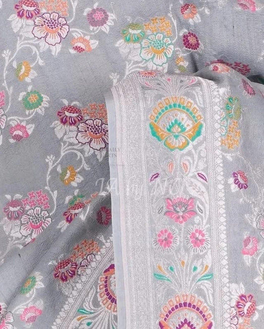 French Banarasi Pure Khaddi Tussar Georgette Meenakari Saree