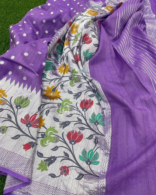 Lavender Banarasi Pure Khaddi Tussar Georgette Paithani Saree