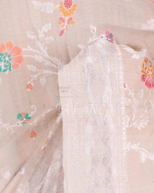 Beige Banarasi Pure Khaddi Tussar Georgette Meenakari Saree