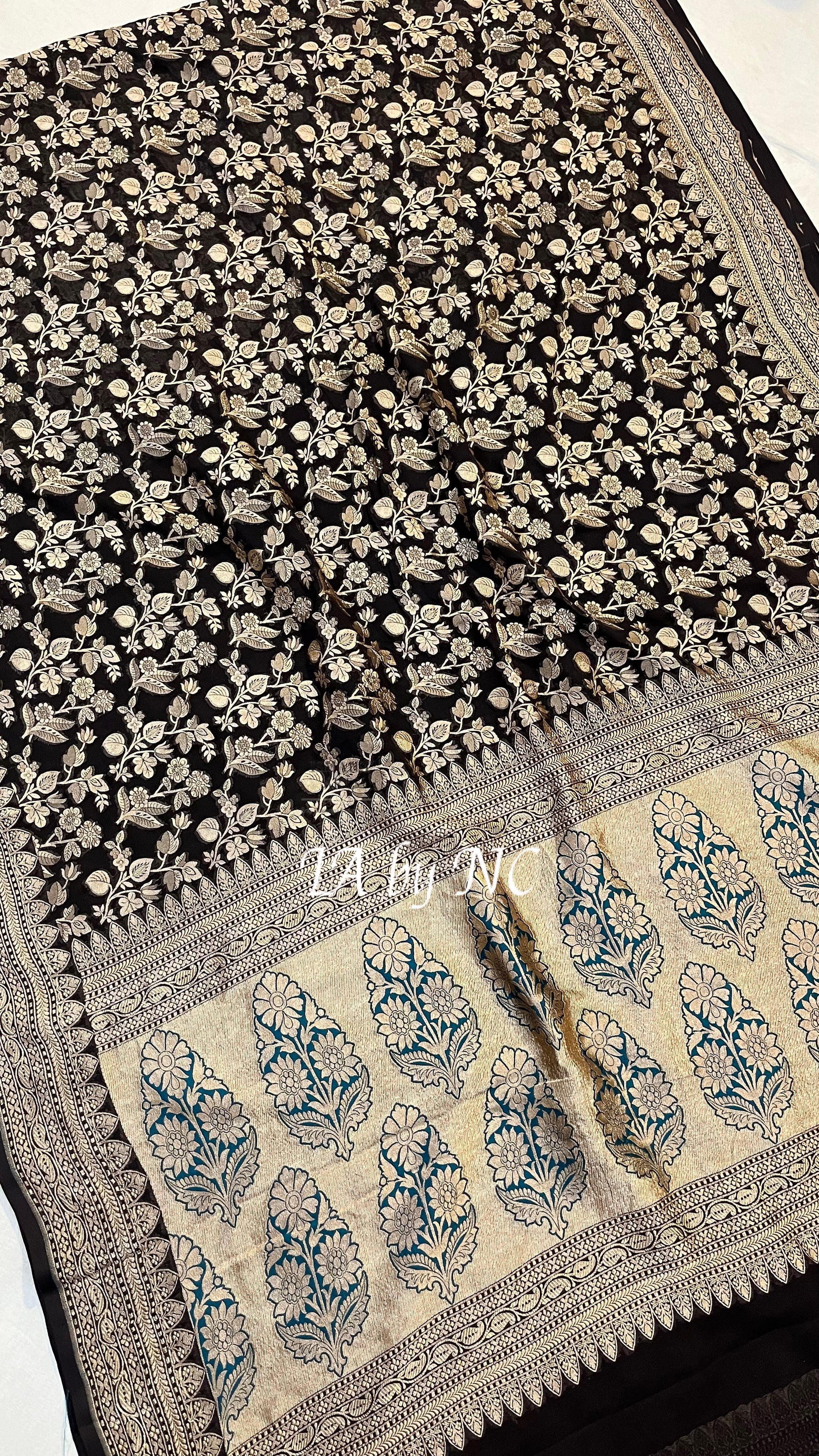Black Banarasi Pure Khaddi Georgette Saree