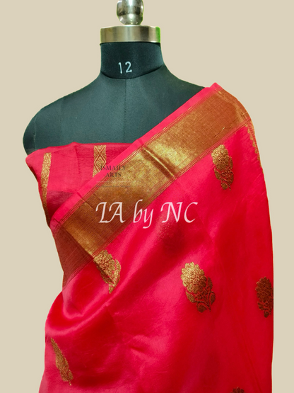 Chilli Banarasi Pure Kora Organza Kadwa Saree