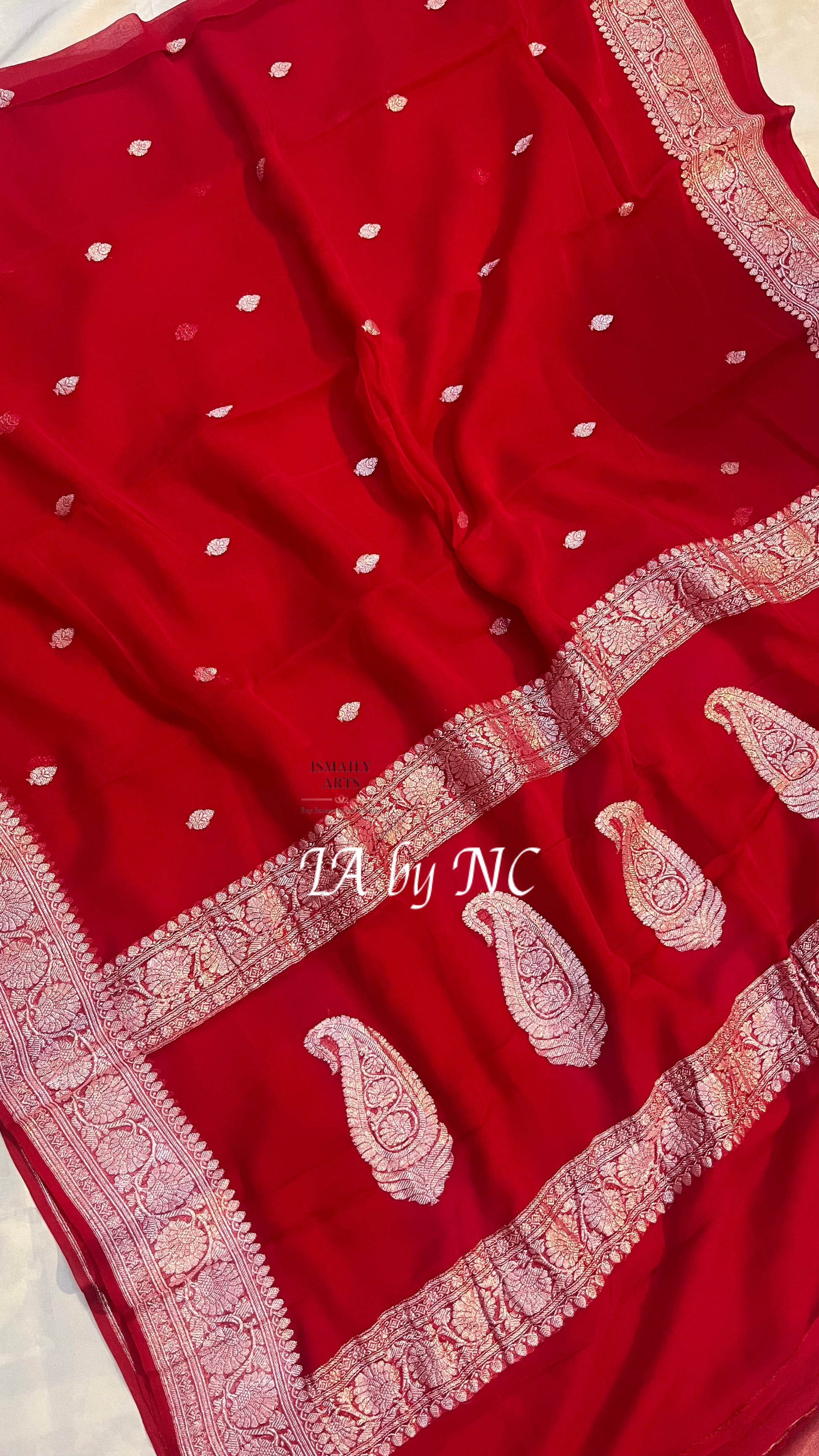 Crimson Banarasi Pure Khaddi Georgette Kadwa Saree