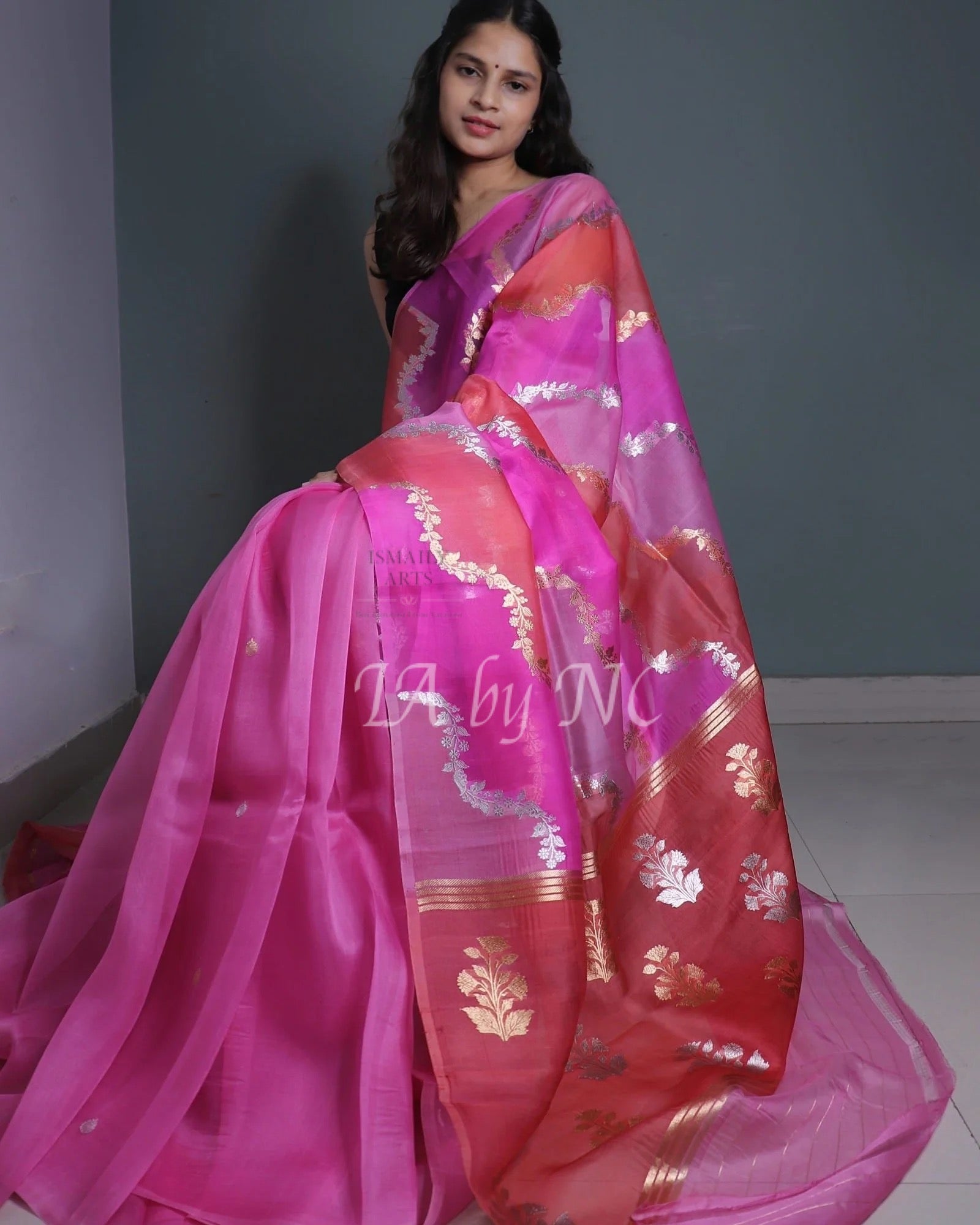 Mulberry Banarasi Pure Kora Silk Kadwa Saree