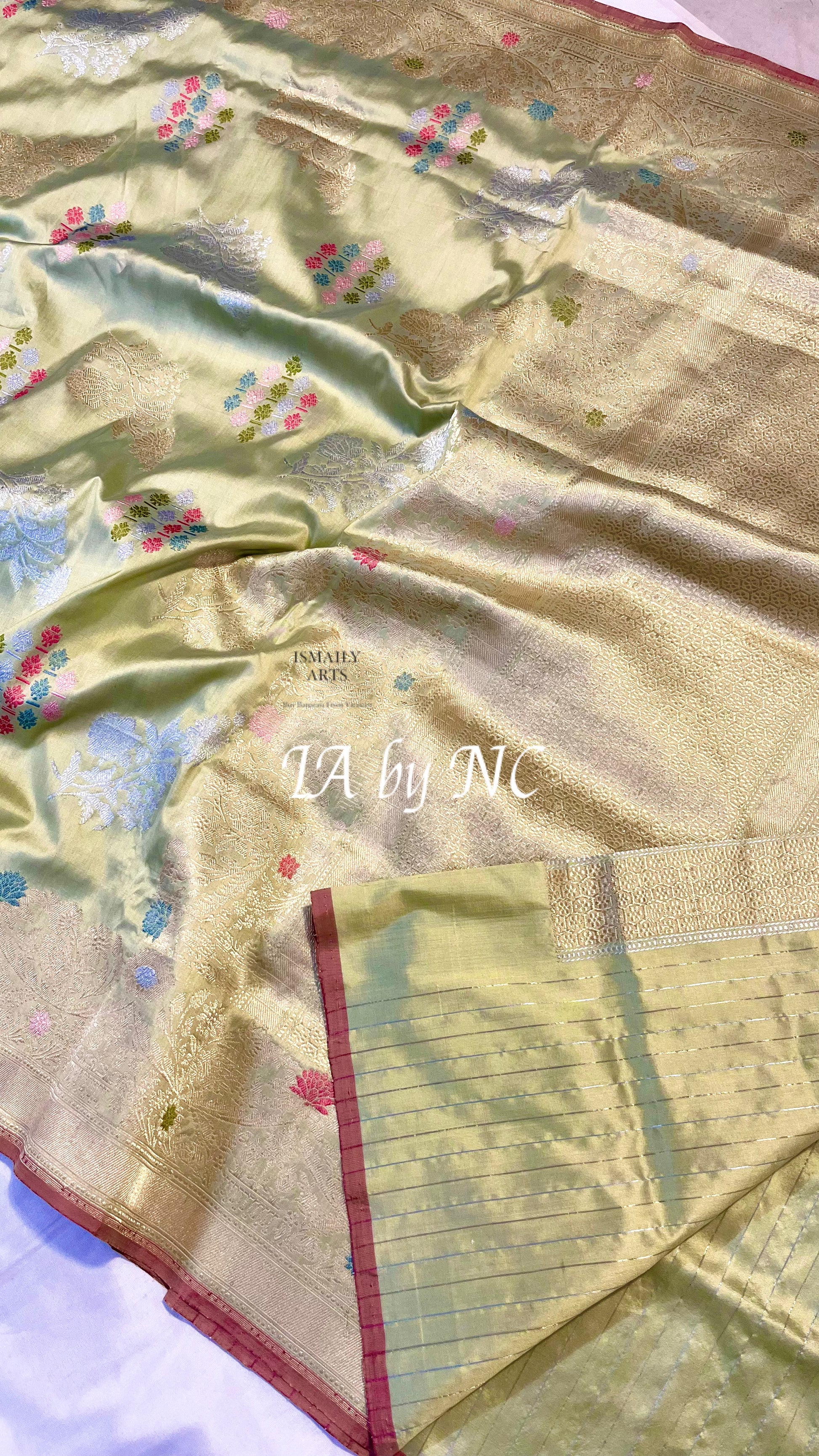 Pista Banarasi Pure Katan Silk Kadwa Pattu Saree