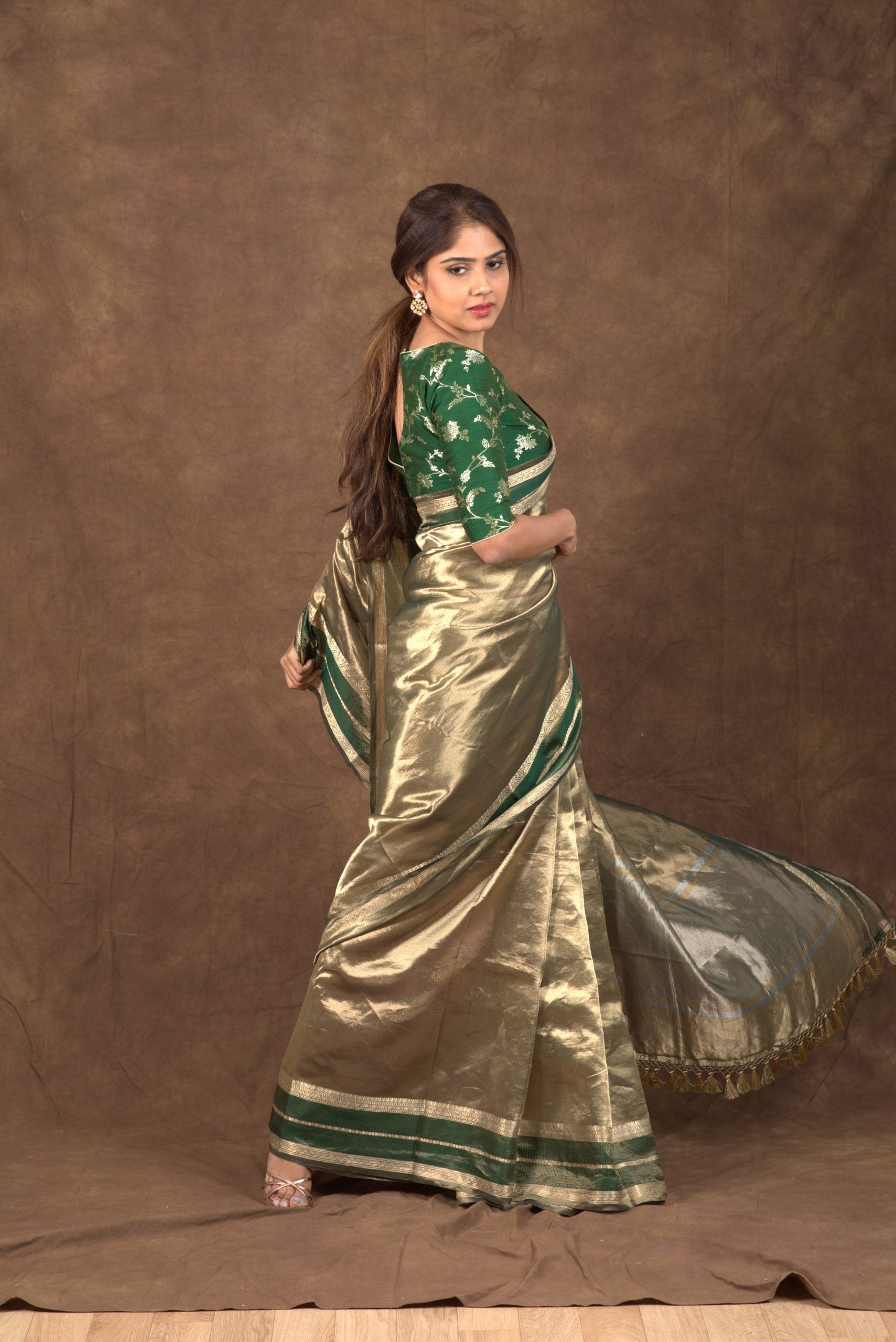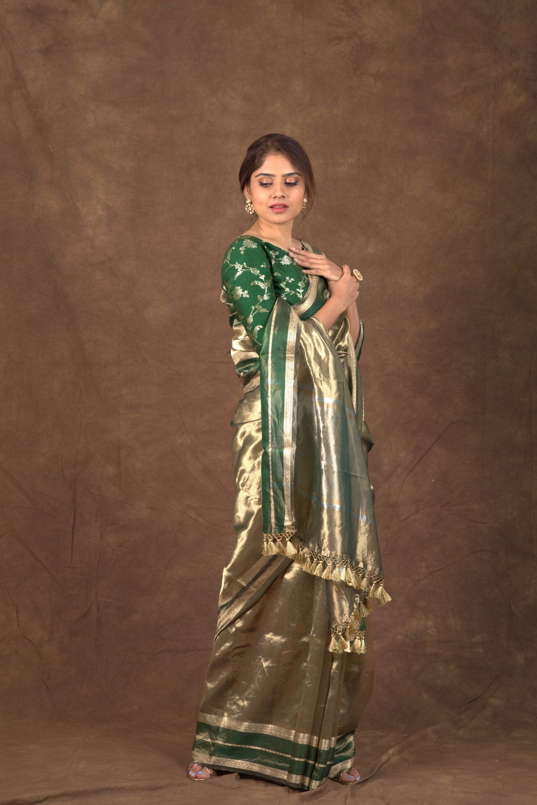 Elevate your wardrobe with our luxurious tissue sarees. Made from lightweight fabric,...