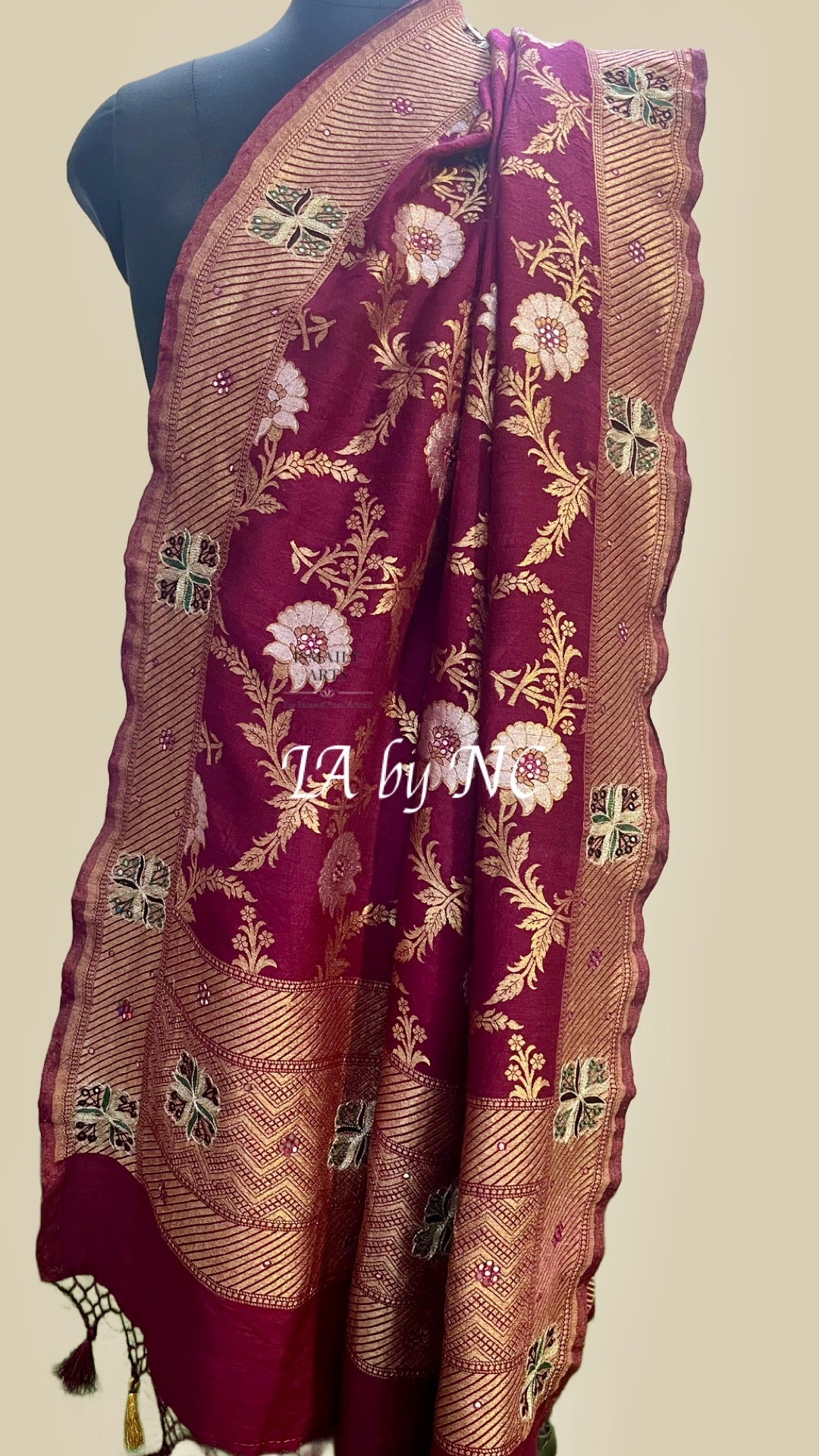 Sangria Banarasi Pure Munga Silk Sona Rupa Handwork Dupatta