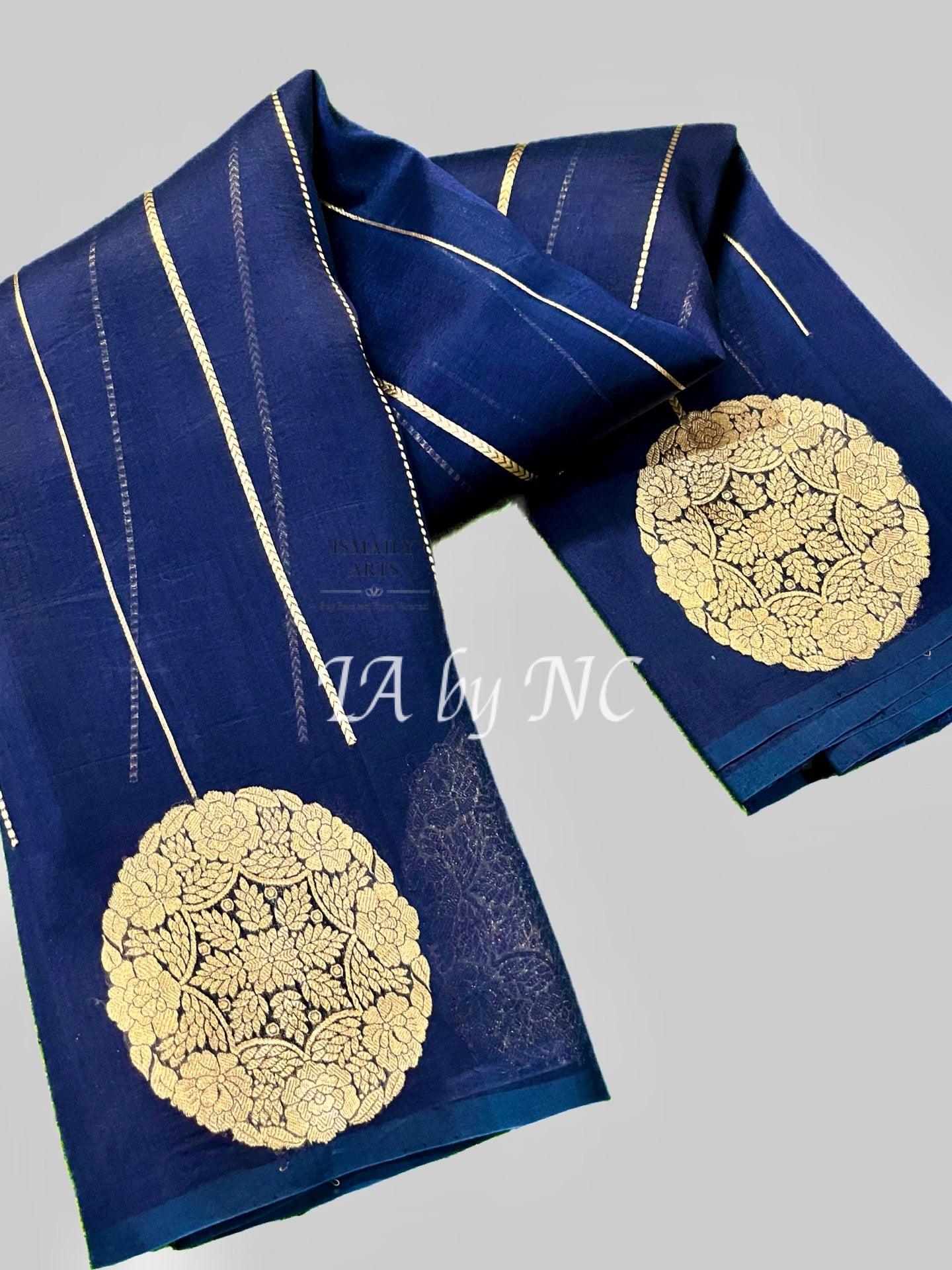• Technique - An enduring Kadwa(locked) weave. The elaborate and laborious Kadwa(Kadhua) technique involves hand-weaving each motifs separately. It takes longer on the handloom, but makes a more robust pattern, which stands out on the fabric.