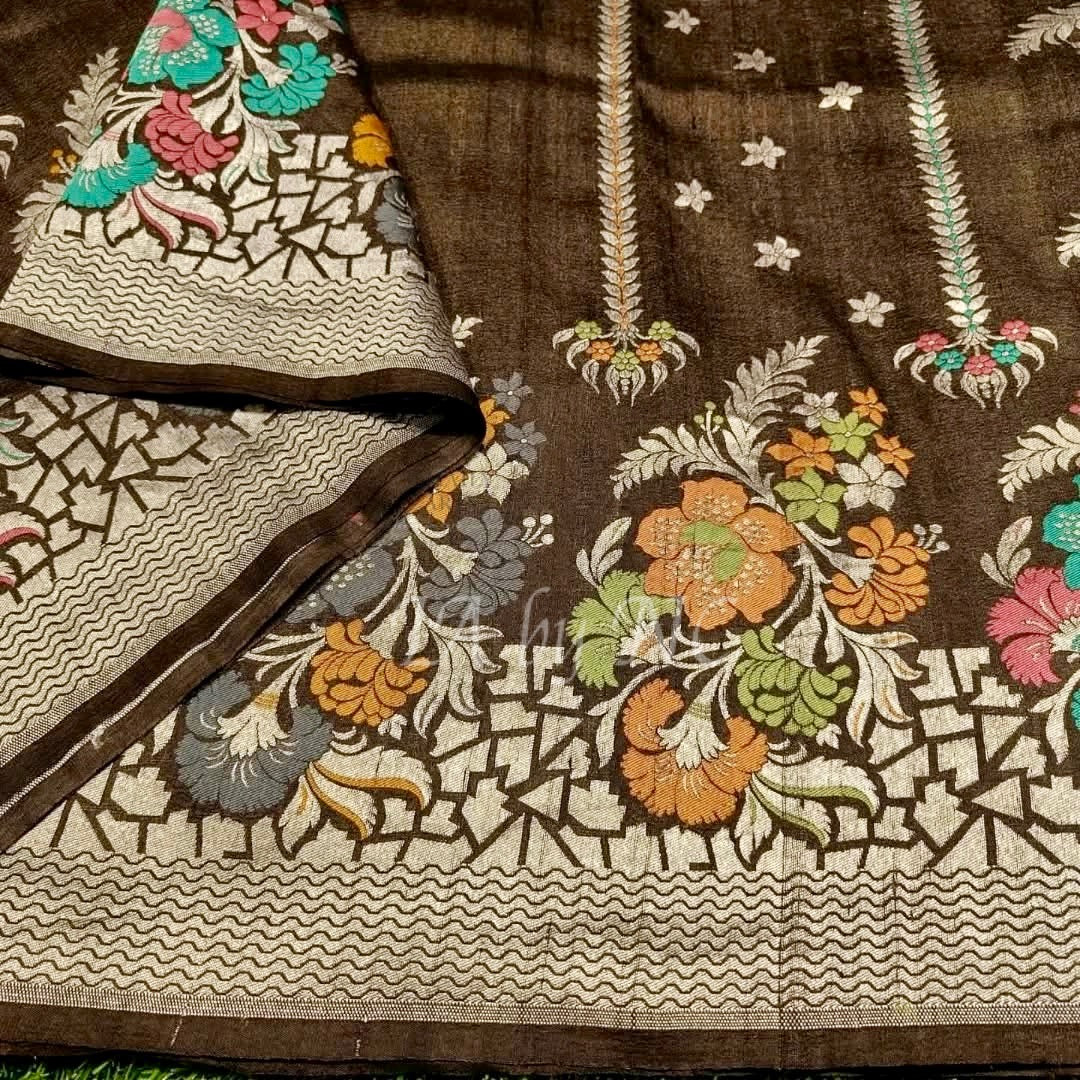 Mahogany Banarasi Pure Khaddi Tussar Georgette Paithani Saree