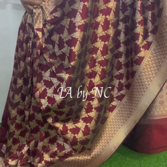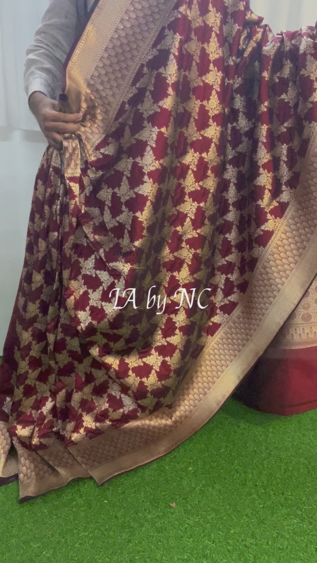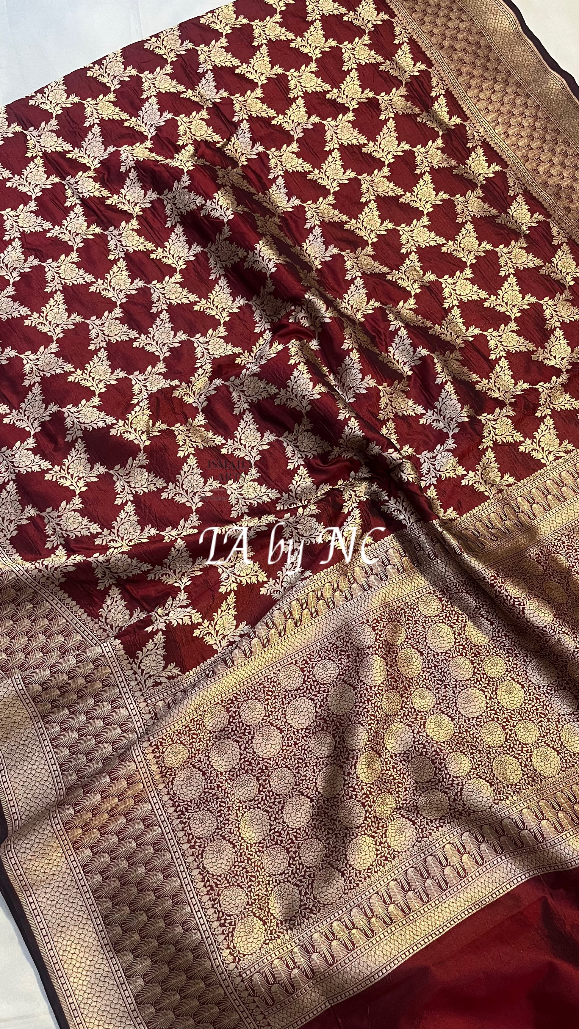 • Speciality - The glorious outline of kadua border lovingly handmade on a base of Pure Katan Silk in Tested zari motifs. Incredible in its details and a mirror to the splendour of Banaras.