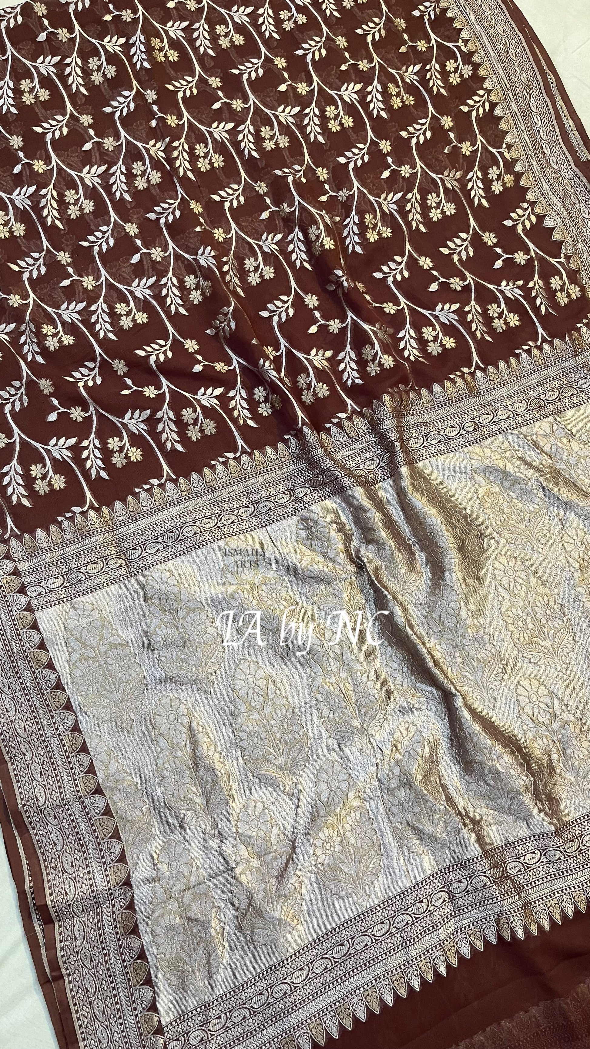 Walnut Banarasi Pure Khaddi Georgette Saree