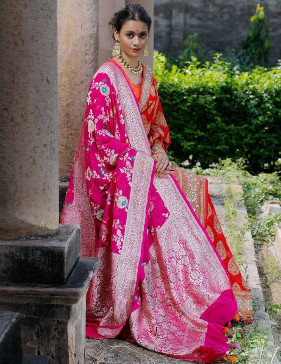 • Technique - Classic Cutwork weaves Banarasi art passed down through generations of weavers.