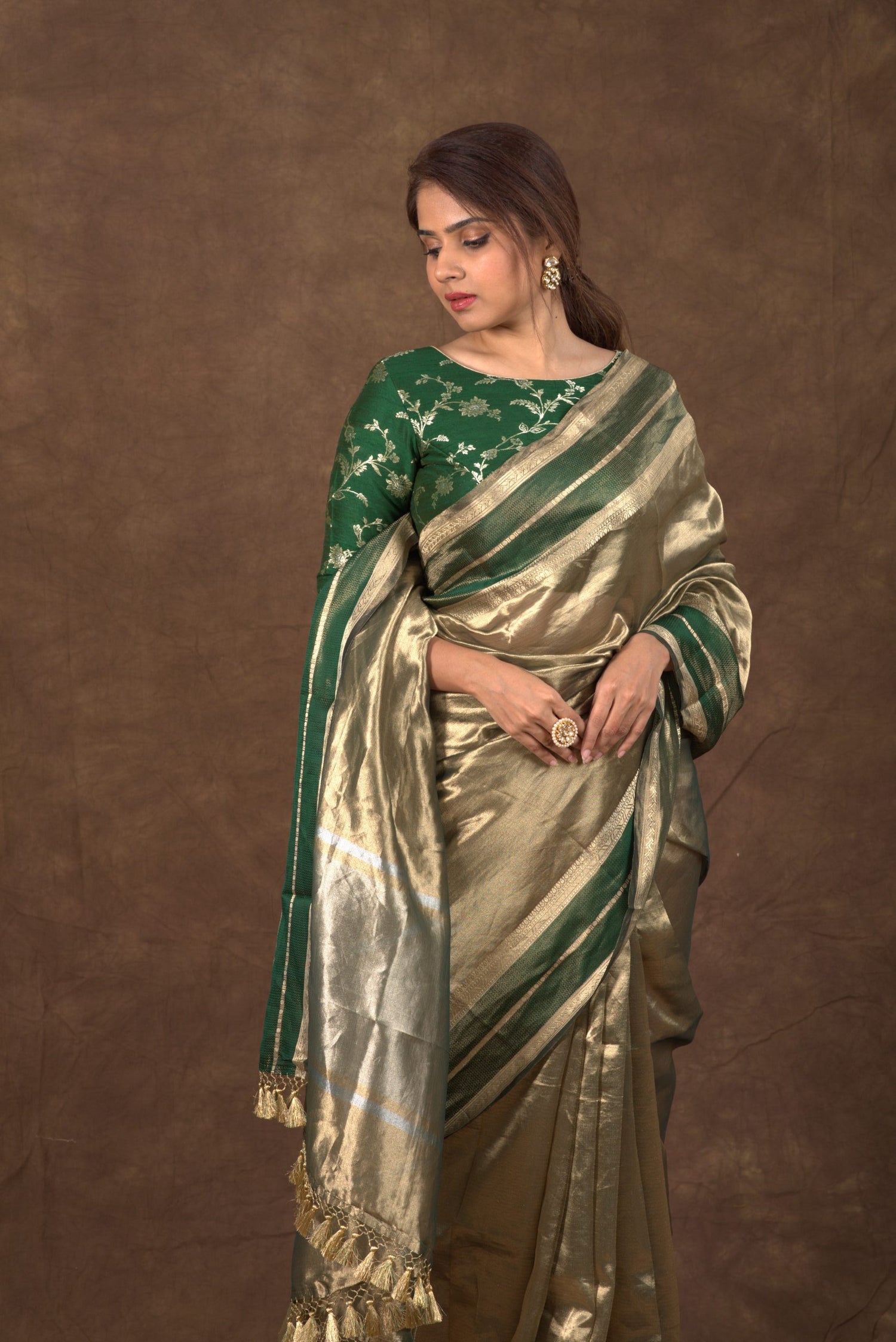 Elevate your wardrobe with our luxurious tissue sarees. Made from lightweight fabric,...