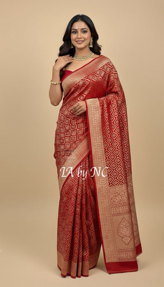 Crimson Banarasi Pure Khaddi Georgette Saree